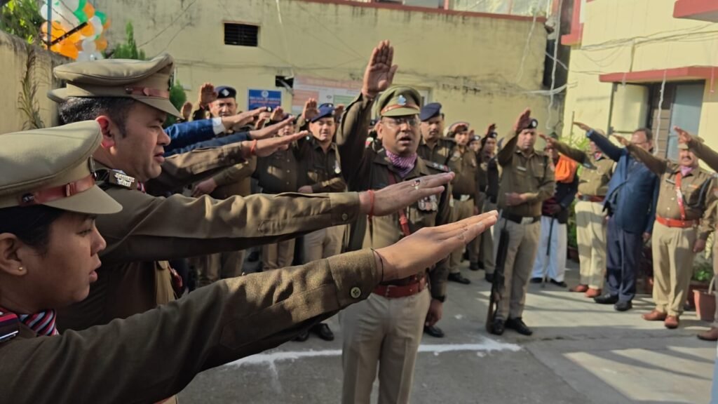 ध्वजारोहण उपरान्त पुलिस अधीक्षक द्वारा भारतीय संविधान की प्रस्तावना को संकल्प/शपथ के रूप में पढ़कर उपस्थित समस्त अधिकारी एवं कर्मचारियों को संविधान की एकता, अखंडता एवं संप्रभुता बनाए रखने की शपथ दिलाई गई।