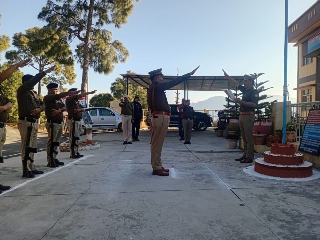आज दिनांक 26 जनवरी 2026 को जनपद चम्पावत में 77वां गणतंत्र दिवस पूरे हर्ष, उल्लास, देशभक्ति एवं गरिमा के साथ धूमधाम से मनाया जा रहा है। इस पावन अवसर पर पुलिस अधीक्षक चम्पावत श्री अजय गणपति महोदय द्वारा पुलिस लाइन, चम्पावत में निर्धारित समयानुसार राष्ट्रगान की मधुर धुन एवं सलामी के साथ सम्मानपूर्वक ध्वजारोहण किया गया है।