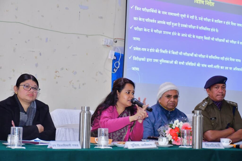 जिलाधिकारी ने परीक्षा ड्यूटी में तैनात सभी शिक्षकों एवं कर्मचारियों को प्रातः 09 बजे तक शत-प्रतिशत उपस्थिति सुनिश्चित करने के निर्देश दिए। साथ ही केंद्र व्यवस्थापकों को परीक्षा प्रारंभ होने से पूर्व परीक्षार्थियों को नियमों एवं दिशा-निर्देशों की स्पष्ट जानकारी देने को कहा।