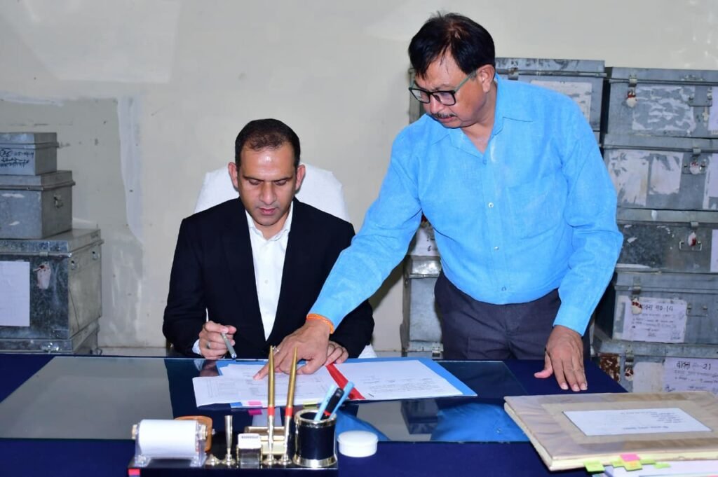 जिलाधिकारी आशीष भटगांई ने सोमवार को कोषागार का अर्धवार्षिक भौतिक सत्यापन किया। जिलाधिकारी ने कोषागार के दो तालक में रखी बहुमूल्य सामग्रियों,वस्तुओं से संबंधित अभिलेखों का बारीकी से अवलोकन किया। उन्होंने इन वस्तुओं से संबंधित विभिन्न रजिस्टरों, जैसे पैडलॉक पंजिका और स्टाम्प पंजिका सहित अन्य महत्वपूर्ण अभिलेखों की वर्तमान स्थिति की विस्तृत समीक्षा की। जिलाधिकारी ने वरिष्ठ कोषाधिकारी को निर्देश देते हुए कहा कि कोषागार में रखी गई सामग्रियों से संबंधित अभिलेखों और रिकार्डों को व्यवस्थित तरीके से रखा जाए।