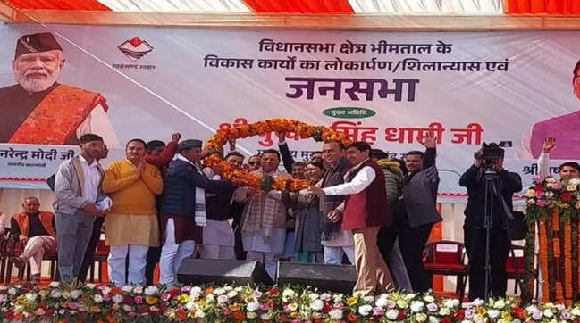 भीमताल – मुख्यमंत्री पुष्कर सिंह धामी शुक्रवार को धारी ब्लॉक स्थित हिमगिरी स्टेडियम लेटीबुंगा पहुंचे। इस अवसर पर उन्होंने नैनीताल जिले की 112.34 करोड़ रुपये की 17 विकास योजनाओं का लोकार्पण और शिलान्यास किया। मुख्यमंत्री ने 70.73 करोड़ रुपये की 8 योजनाओं का लोकार्पण किया। इसमें प्रमुख परियोजनाओं में शामिल हैं: