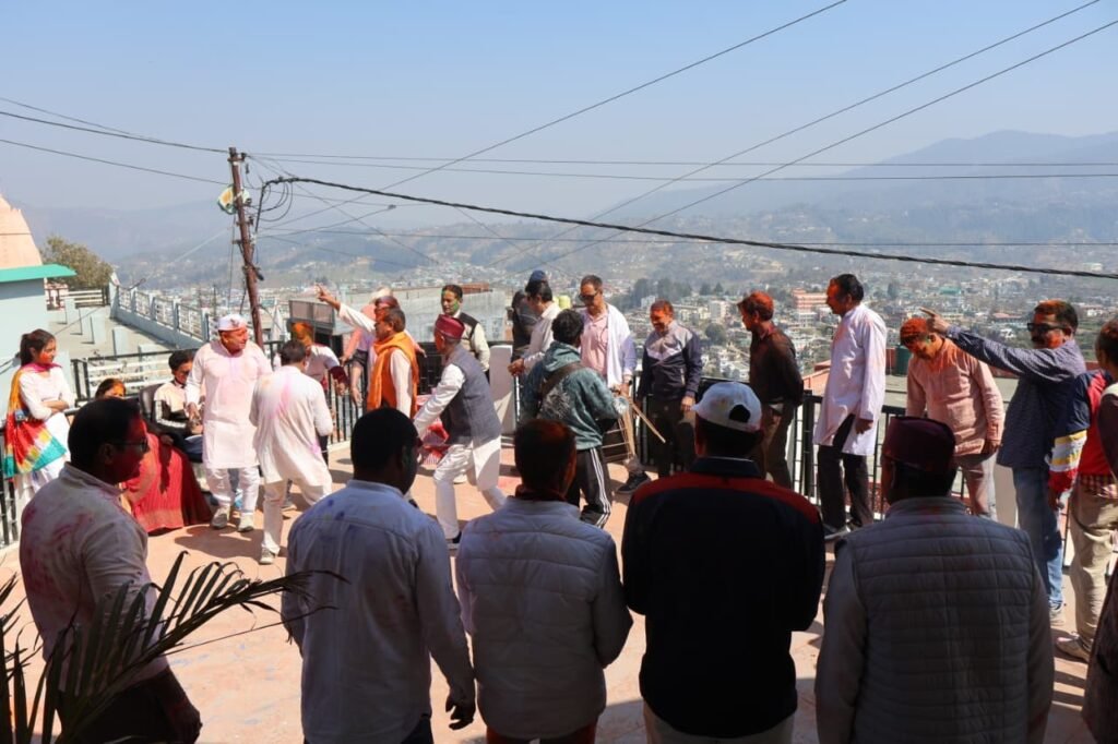 पारंपरिक वाद्ययंत्रों की मधुर संगत में कुमाऊँनी खड़ी होली का सामूहिक गायन किया गया, जिसकी सुरमयी स्वरलहरियों ने पूरे वातावरण को लोक-संस्कृति के रंगों से सराबोर कर दिया और उपस्थित सभी जनों को उत्साह एवं आनंद से भर दिया।