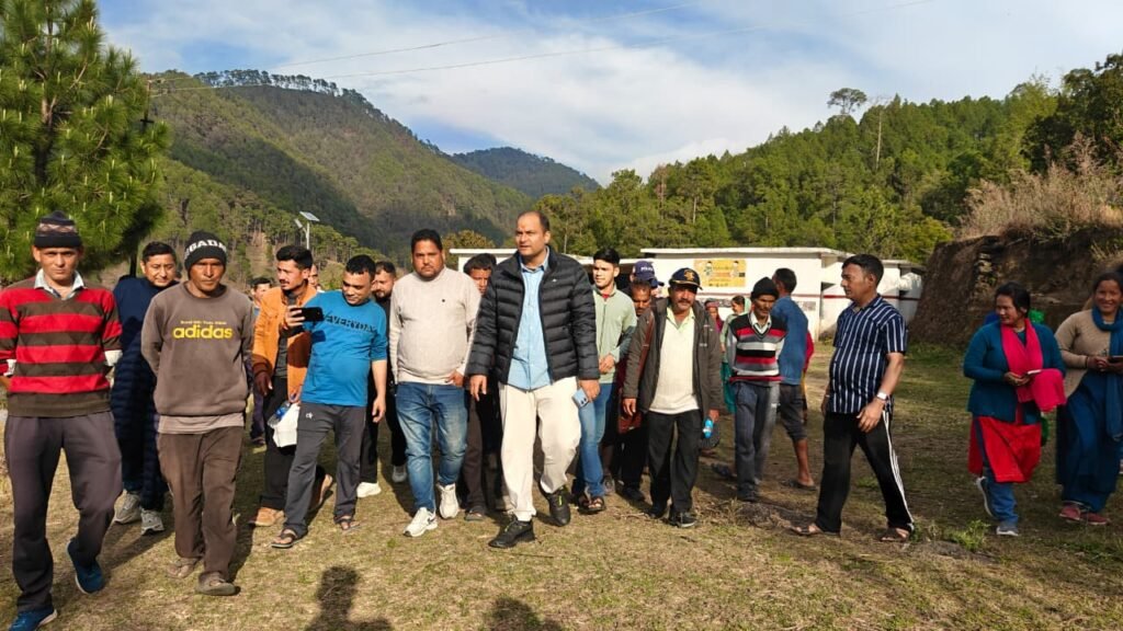 बसौटी माफी से रौकुंवर तक लगभग 3 किलोमीटर का दुर्गम जंगल मार्ग पैदल तय कर जिलाधिकारी गांव पहुंचे।