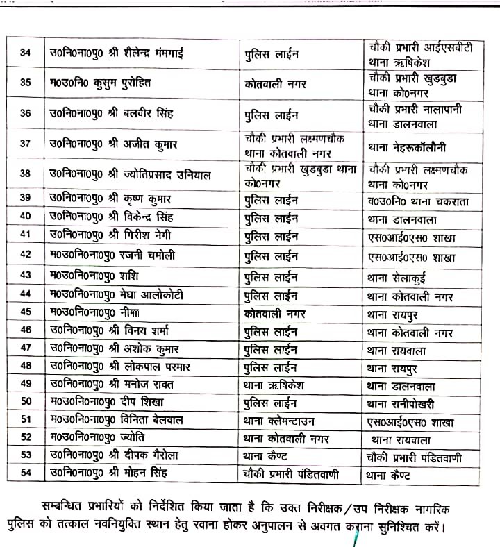 एसएसपी देहरादून की ओर से आदेश देर शाम किया गया है। जिसमें संबंधित अधिकारियों को तत्काल प्रभाव से अपनी नई तैनाती पर कार्यभार ग्रहण करने के निर्देश दिए गए हैं। पुलिस विभाग के इस निर्णय को आम जनता की सुरक्षा और बेहतर पुलिसिंग की दिशा में एक अहम पहल माना जा रहा है।