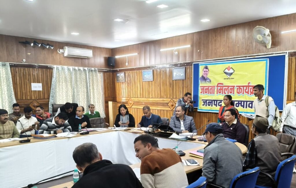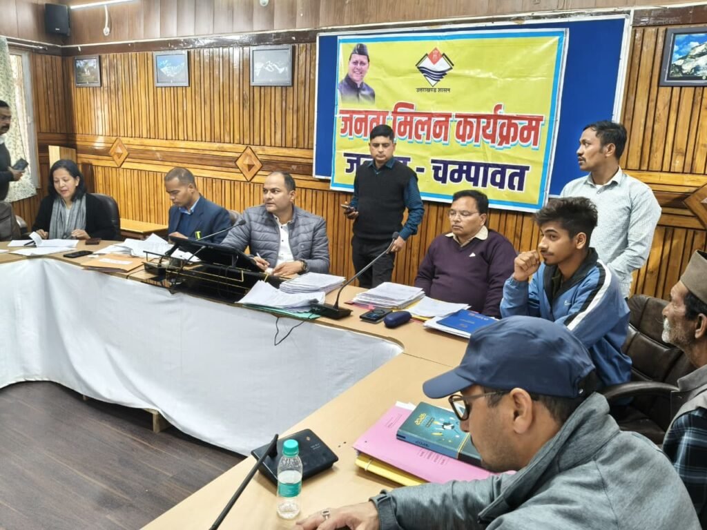 जनपद चम्पावत में आमजन की समस्याओं के त्वरित एवं प्रभावी समाधान के उद्देश्य से सोमवार को जिला कार्यालय सभागार में जिलाधिकारी श्री मनीष कुमार की अध्यक्षता में साप्ताहिक ‘जनता मिलन’ कार्यक्रम आयोजित किया गया। कार्यक्रम में जनपद के दूरस्थ क्षेत्रों से पहुंचे नागरिकों ने अपनी व्यक्तिगत, सामाजिक एवं विकास से जुड़ी कुल 92 शिकायतें जिलाधिकारी के समक्ष प्रस्तुत कीं।