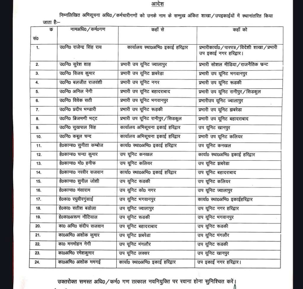 Uncategorized उत्तराखंड पुलिस महकमें में बड़ें तबादले.देखें लिस्ट helpinghandnews1@gmail.com Published: February 11, 2026 | Updated: February 11, 2026 1 minute read 34 views 31 Views Gurmeet singh chandhok उत्तराखंड में एक बार फिर से पुलिस महकमे में बड़ा बदलाव हुआ है आगामी कुंभ मेला एवं चुनाव के दृष्टिगत एसएसपी हरिद्वार द्वारा खुफिया तंत्र विभाग को सुदृढ़ किए जाने हेतु उनके कार्य क्षेत्र में किया बड़ा बदलाव । What do you feel about this? 0% Love 0% Funny 0% Wow 0% Sad 0% Angry Uncategorized Post navigation Previous: एसएसपी नैनीताल के निर्देशन में पुलिस की नशे के विरुद्ध कार्यवाही,मुखानी क्षेत्र में अवैध कच्ची शराब की तस्करी करते हुए अभियुक्त को किया गिरफ्तारNext: हल्द्वानी: मुखानी में चेन स्नैचिंग का खुलासा, एसएसपी मंजुनाथ टीसी ने किया खुलासा Leave a Reply Cancel replyYour email address will not be published. Required fields are marked *Comment * Name * Email * Website Save my name, email, and website in this browser for the next time I comment. Δ Author's Other Posts हल्द्वानी: मुखानी में चेन स्नैचिंग का खुलासा, एसएसपी मंजुनाथ टीसी ने किया खुलासा हल्द्वानी: मुखानी में चेन स्नैचिंग का खुलासा, एसएसपी मंजुनाथ टीसी ने किया खुलासा February 11, 2026 0 2 एसएसपी नैनीताल के निर्देशन में पुलिस की नशे के विरुद्ध कार्यवाही,मुखानी क्षेत्र में अवैध कच्ची शराब की तस्करी करते हुए अभियुक्त को किया गिरफ्तार एसएसपी नैनीताल के निर्देशन में पुलिस की नशे के विरुद्ध कार्यवाही,मुखानी क्षेत्र में अवैध कच्ची शराब की तस्करी करते हुए अभियुक्त को किया गिरफ्तार February 11, 2026 0 8 उत्तराखंड- सहकारिता विभाग में तैनात होंगे प्रोफेशनल एमडी, लापरवाही पर मंत्री सख्त उत्तराखंड- सहकारिता विभाग में तैनात होंगे प्रोफेशनल एमडी, लापरवाही पर मंत्री सख्त February 11, 2026 0 7 स्कूलों में गर्मी और सर्दी की समान होंगी छुट्टियां, साल में 16 अवकाश होंगे कम स्कूलों में गर्मी और सर्दी की समान होंगी छुट्टियां, साल में 16 अवकाश होंगे कम February 11, 2026 0 14 Related Stories 1 minute read Uncategorized एसएसपी नैनीताल के निर्देशन में पुलिस की नशे के विरुद्ध कार्यवाही,मुखानी क्षेत्र में अवैध कच्ची शराब की तस्करी करते हुए अभियुक्त को किया गिरफ्तार helpinghandnews1@gmail.com February 11, 2026 0 8 1 minute read Uncategorized उत्तराखंड- सहकारिता विभाग में तैनात होंगे प्रोफेशनल एमडी, लापरवाही पर मंत्री सख्त helpinghandnews1@gmail.com February 11, 2026 0 7 1 minute read Uncategorized स्कूलों में गर्मी और सर्दी की समान होंगी छुट्टियां, साल में 16 अवकाश होंगे कम helpinghandnews1@gmail.com February 11, 2026 0 14 1 minute read Uncategorized उत्तराखंड-भीमताल जा रहे युवक से लूट, एक लाख रुपए उड़ाए, फिर……… helpinghandnews1@gmail.com February 11, 2026 0 19 1 minute read Uncategorized रुड़की में बच्चों के विवाद ने ली हिंसक रूप, दो पक्षों में जमकर हुई मारपीट और तोड़फोड़ helpinghandnews1@gmail.com February 11, 2026 0 5 1 minute read Uncategorized उत्तराखंड: इंसानियत शर्मसार! अस्पताल में बच्चे को छोड़कर भागा सगा भाई.. नर्सिंग स्टाफ बना सहारा helpinghandnews1@gmail.com February 11, 2026 0 10 Trending Now हल्द्वानी: मुखानी में चेन स्नैचिंग का खुलासा, एसएसपी मंजुनाथ टीसी 