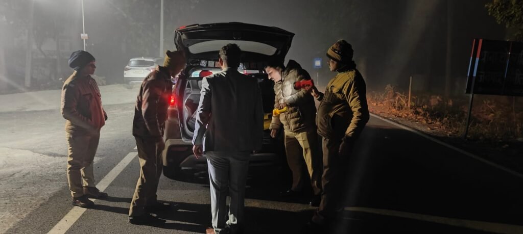 *SSP NAINITAL डॉ0 मंजुनाथ टी0सी0* के निर्देशन में जनपद में आपराधिक गतिविधियों पर लगाम लगाने, जनता की सुरक्षा एवं यातायात नियमों का पालन कराए जाने हेतु पुलिस ने गत रात्रि में वृहद चेकिंग अभियान चलाया।
